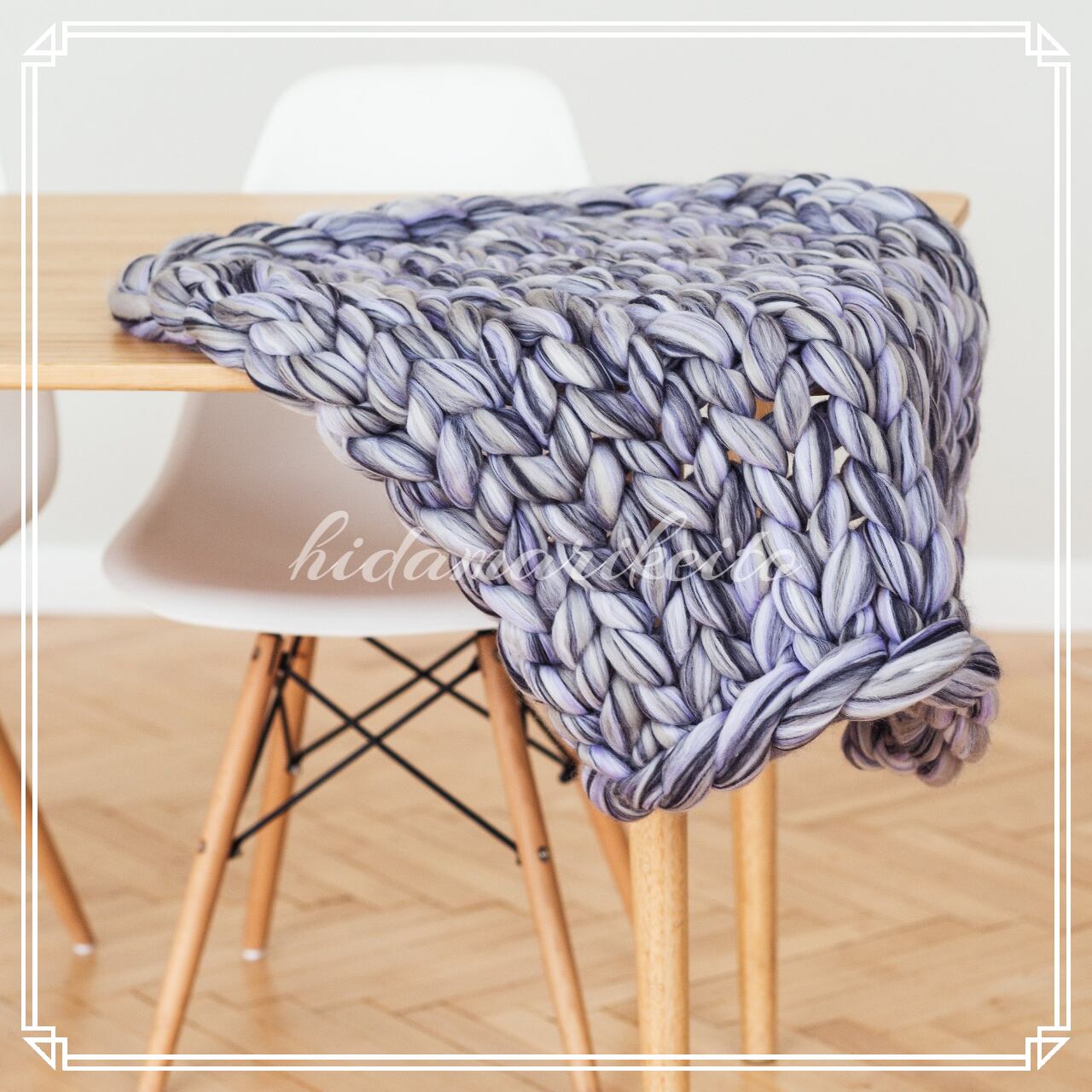 海外インテリア好きさんの間で大流行中の超極太毛糸、チャンキーニットで編んだブランケットです。