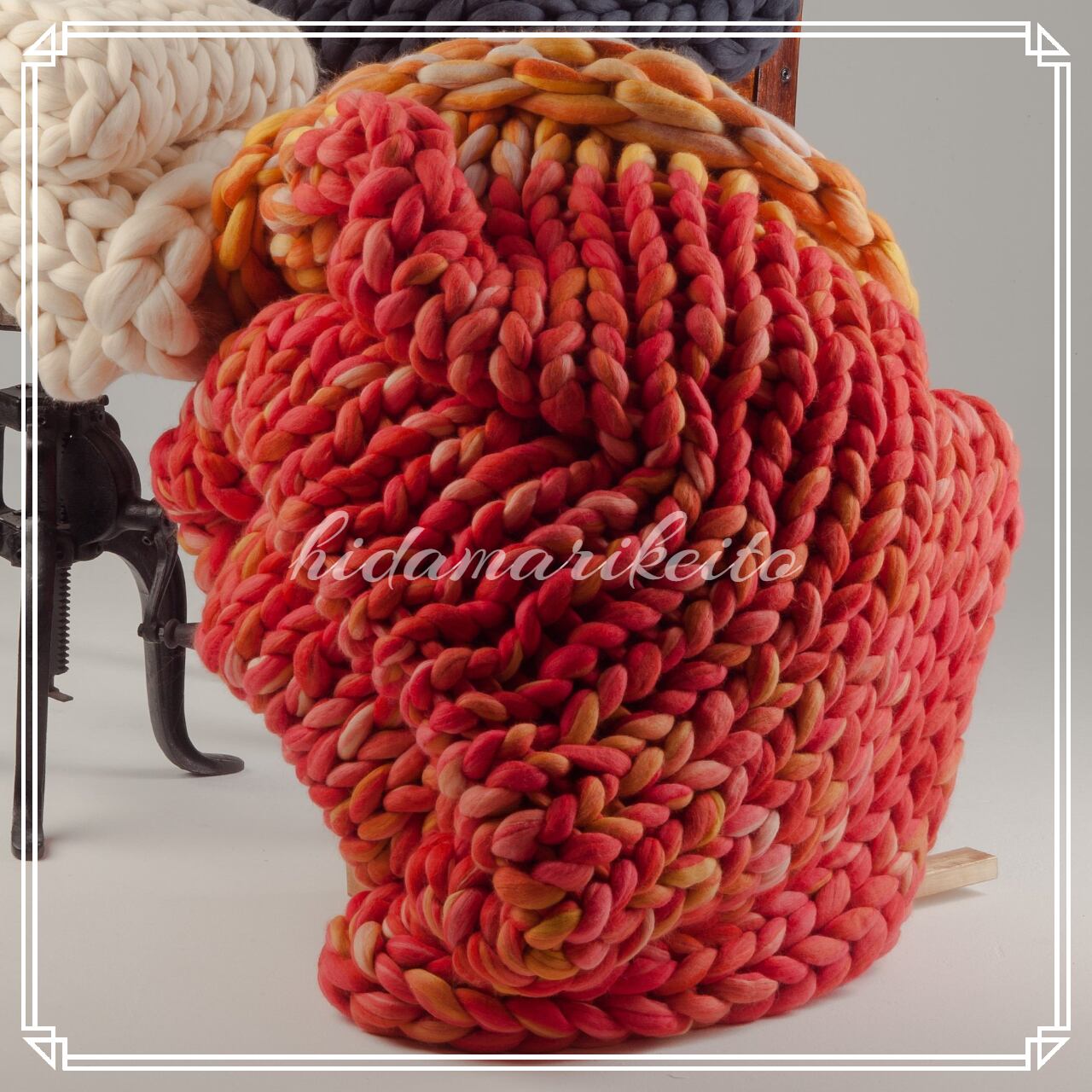 「チャンキー(Chunky)」=「ずんぐりとした」という意味通り、とても太くてふんわりとした超極太の毛糸を手作業で丁寧に編み上げました。