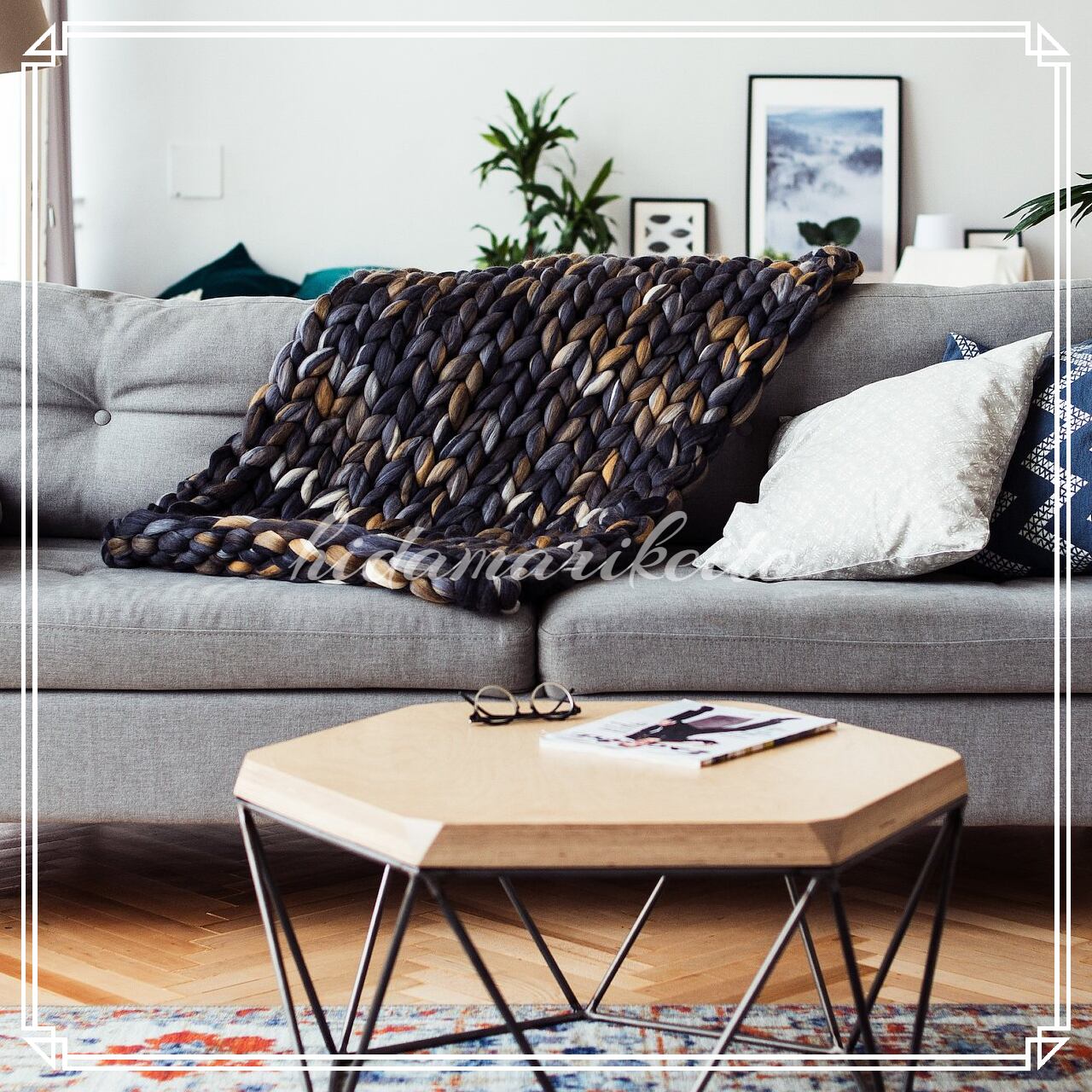 海外インテリア好きさんの間で大流行中の超極太毛糸、チャンキーニットで編んだブランケットです。