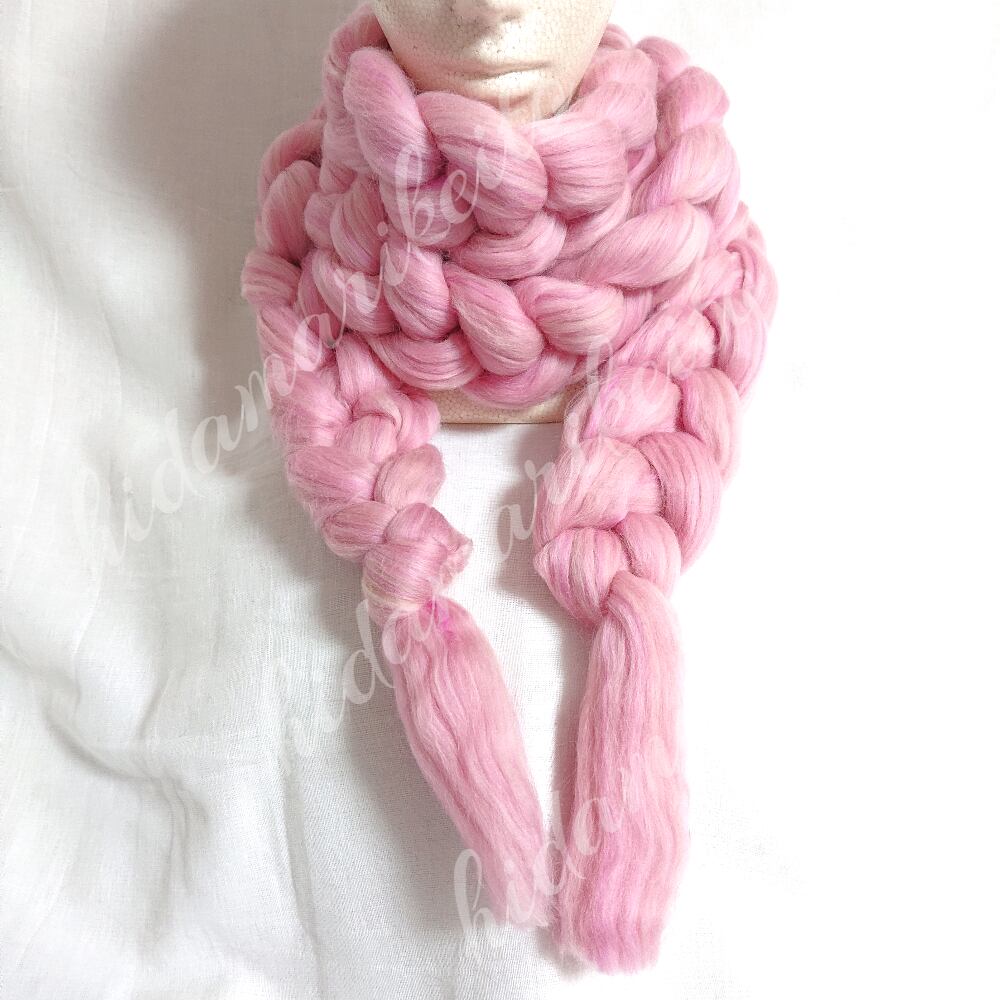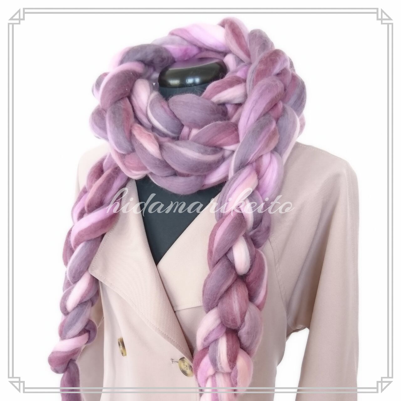 海外インテリア好きさんの間で大流行中の超極太毛糸、チャンキーニットで編んだシンプルなマフラーです。