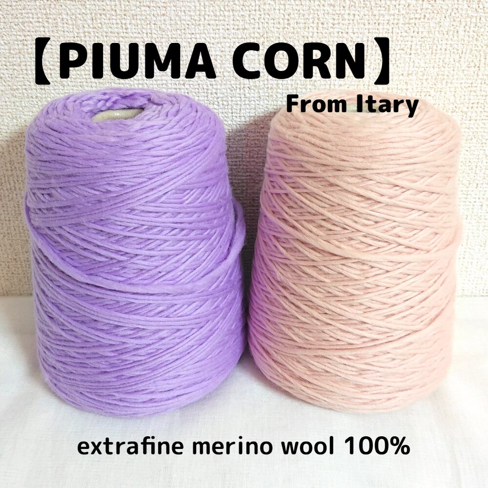 こちらは通常の「PIUMA」約5玉分に相当するお得なコーン巻です。カーディガンやブランケットなど大きな作品を編みたい方には糸継ぎの必要がないのでとても便利です。